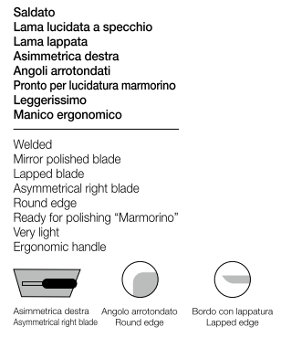 Frattone in acciaio inox saldato lama lappata asimmetrica destra lucidata a specchio.